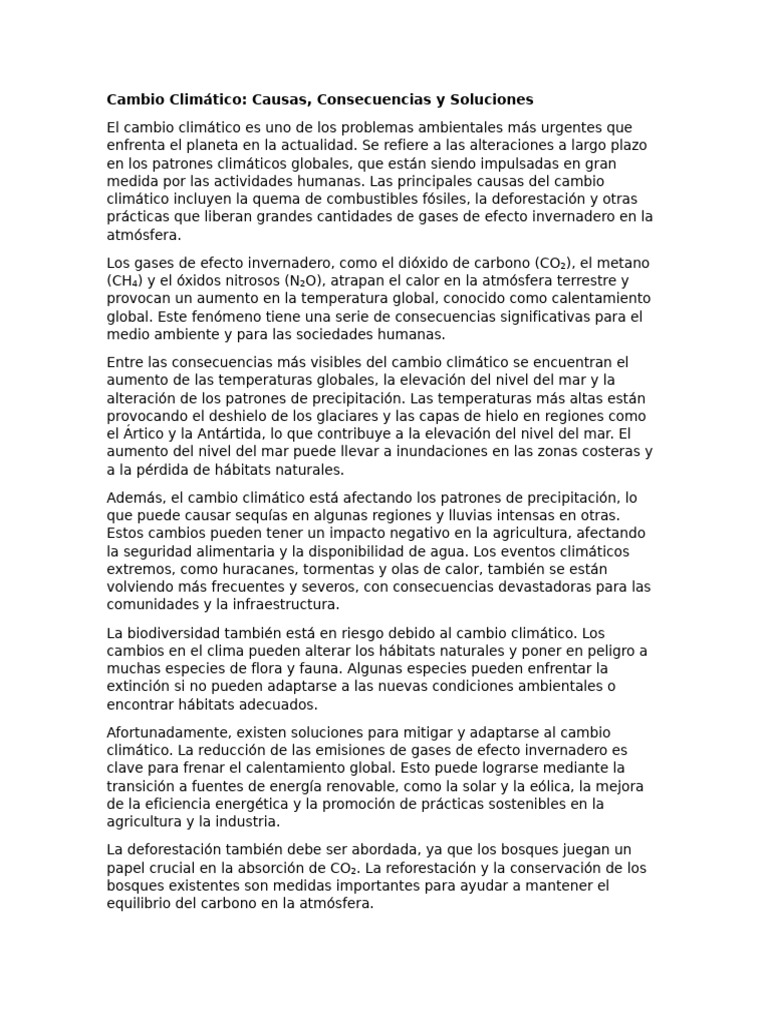 Cambio Climático: Causas, Consecuencias y Soluciones