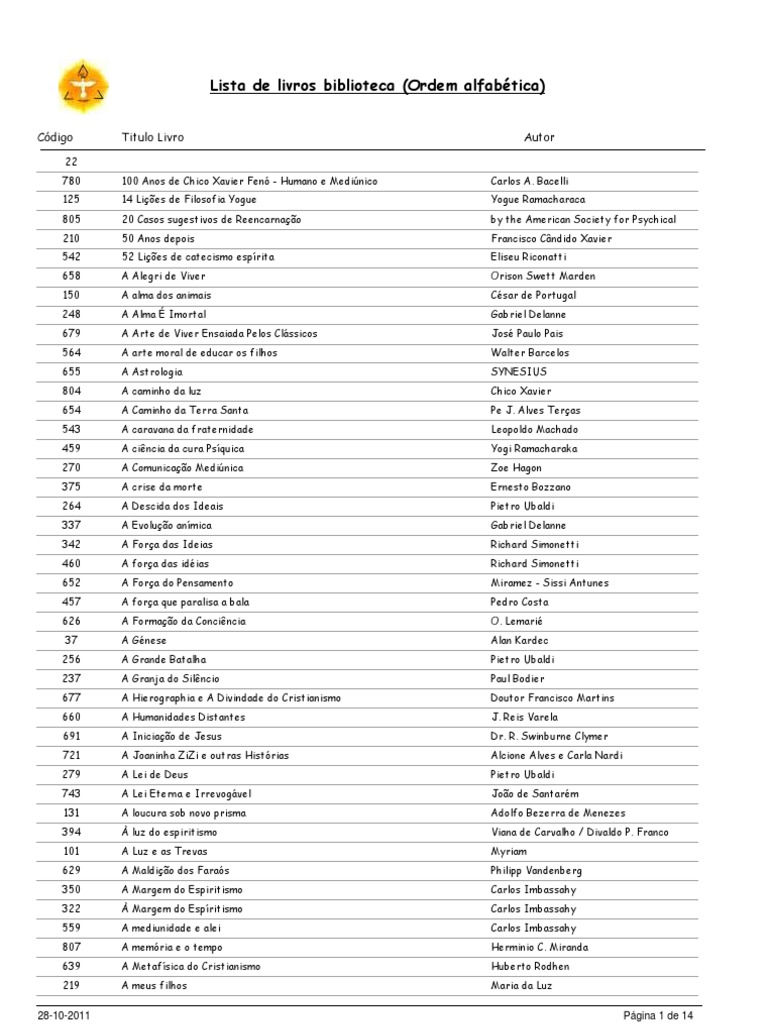 Divaldo Pereira Franco Pietro Ubaldi Pietro Ubaldi Pietro Ubaldi Madame P-G.Leymarie Pietro Ubaldi Leopoldo Balduino Francisco Cndido Xavier Pietro Ubaldi F. Valdomiro Lorenz Yogue Ramacharaca Diamantino Coelho Fernandes Francisco Cndido Xavier Ceclia Rocha e Clara Arajo Francisco Cndido Xavier Hermnio C. Miranda Almerindo Martins de Castro Umberto Ferreira Wallace Leal V. Rodrigues Jean Francis Crolard Pgina 12 de 14