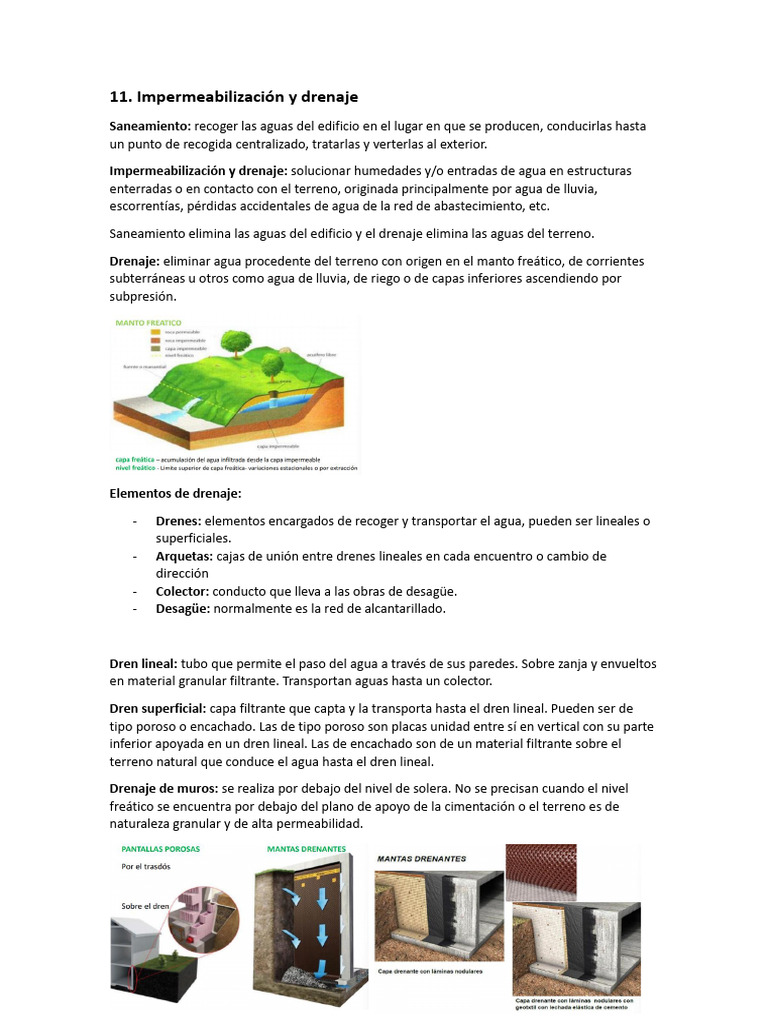 Saneamiento elimina las aguas del edificio y el drenaje elimina las aguas del terreno.
