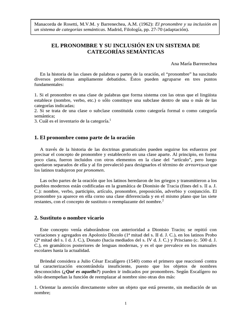 precisar el concepto de pronombre y establecerlo en una clase aparte. Al principio, en forma