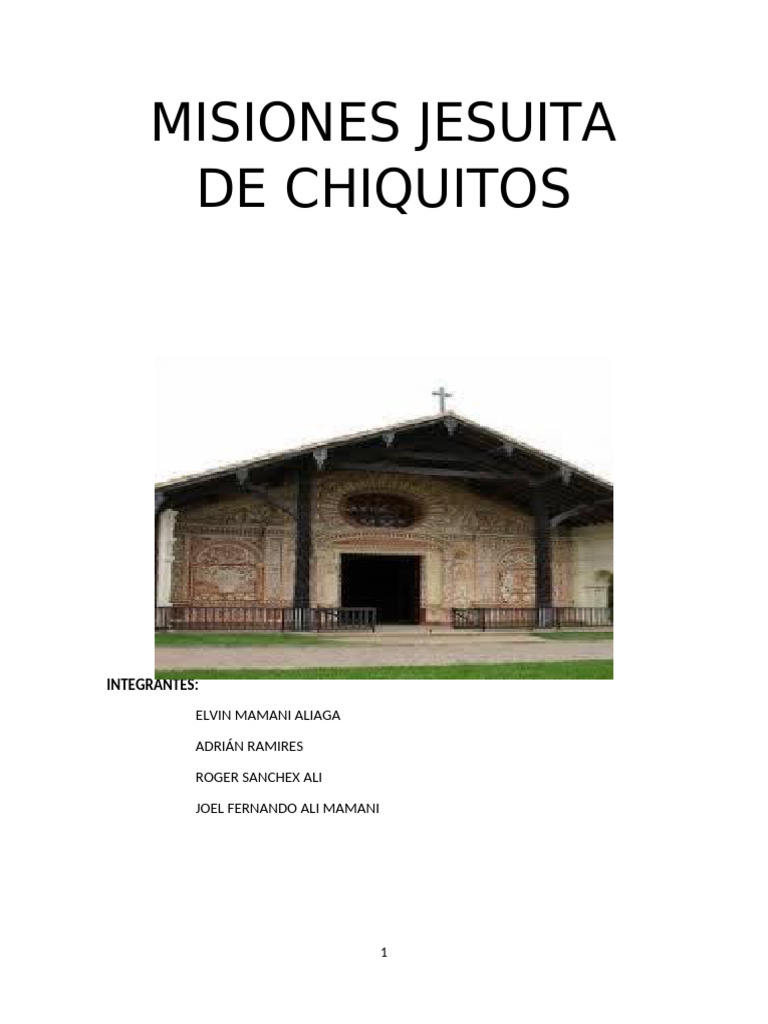sobre las misiones jesuitas de chiquitos las cuales nos llamaron mucho la
