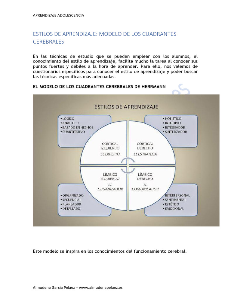 ESTILOS DE APRENDIZAJE: MODELO DE LOS CUADRANTES