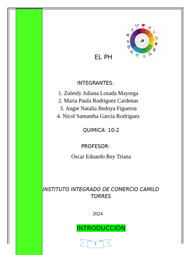 1. DEFINICIÓN DE PH: El pH es una medida de la