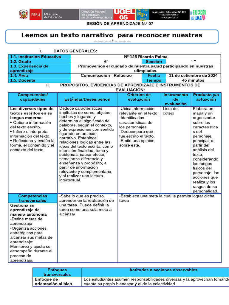 SESIÓN DE APRENDIZAJE N.