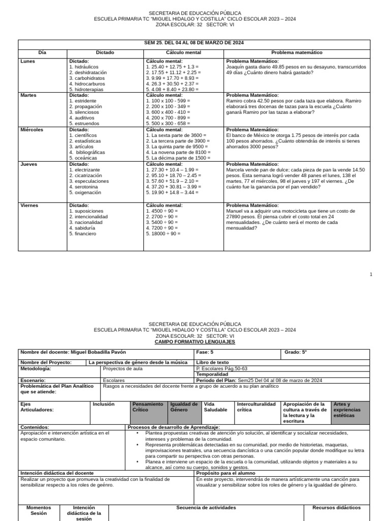 Escenario: Escolar Periodo del Plan: Sem25 Del 04 al 08 de marzo de 2024