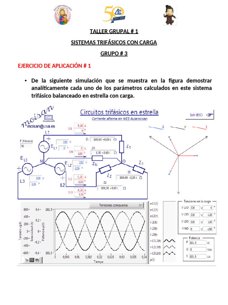 • Alimentamos una carga trifásica equilibrada con conexión en