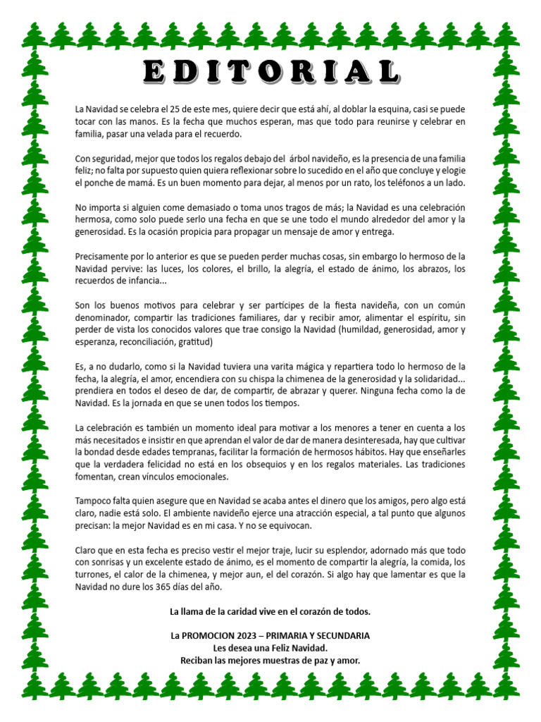 fecha, la alegría, el amor, encendiera con su chispa la chimenea de la generosidad y la solidaridad...