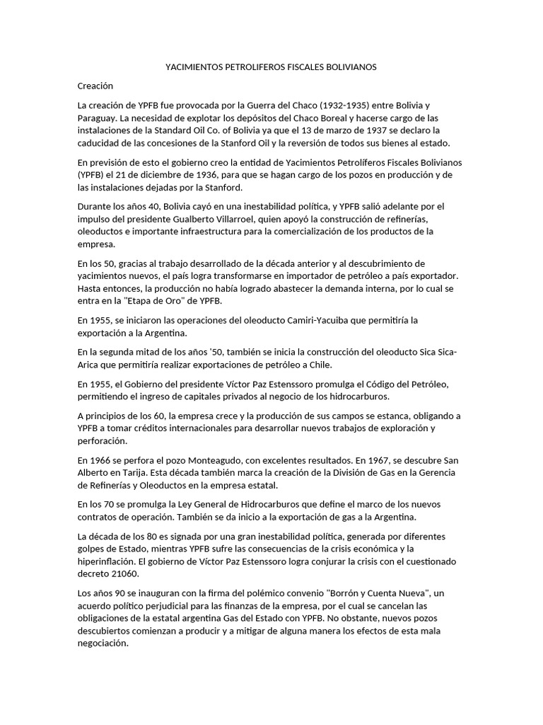 YACIMIENTOS PETROLIFEROS FISCALES BOLIVIANOS