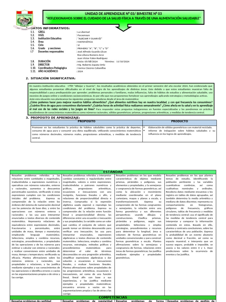durante la matemática LAS 4 la unidad de salida (sumativa) problemáticas