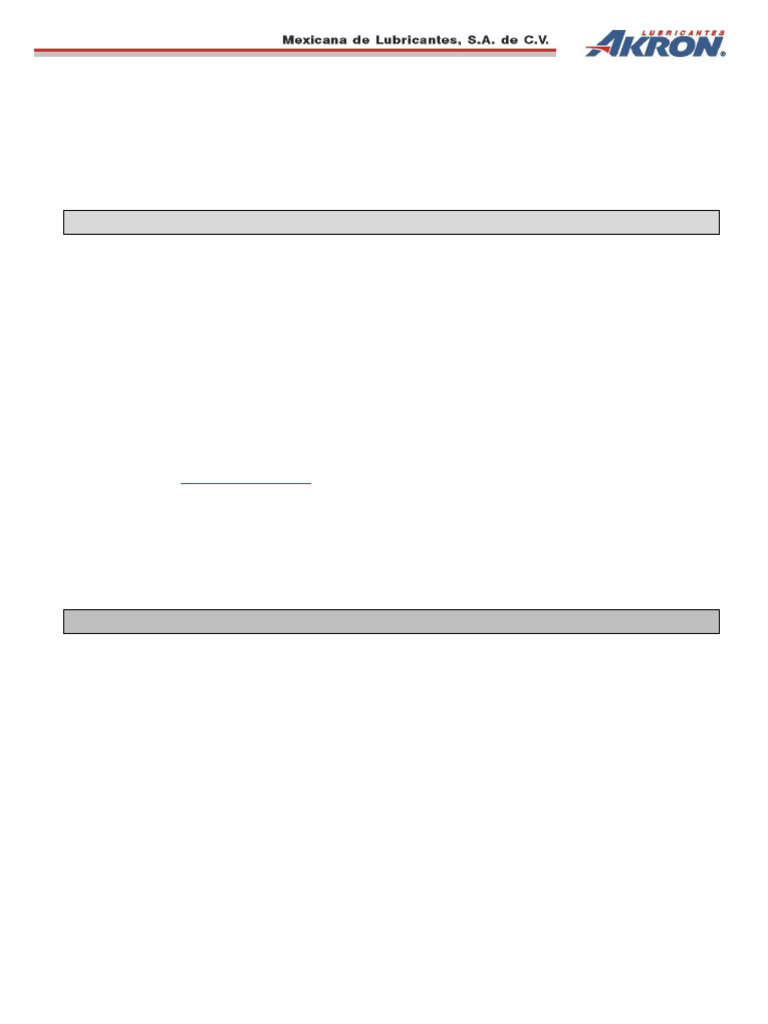 11.7. Otra información: Estos aceites no están enlistados en el reporte anual de la National