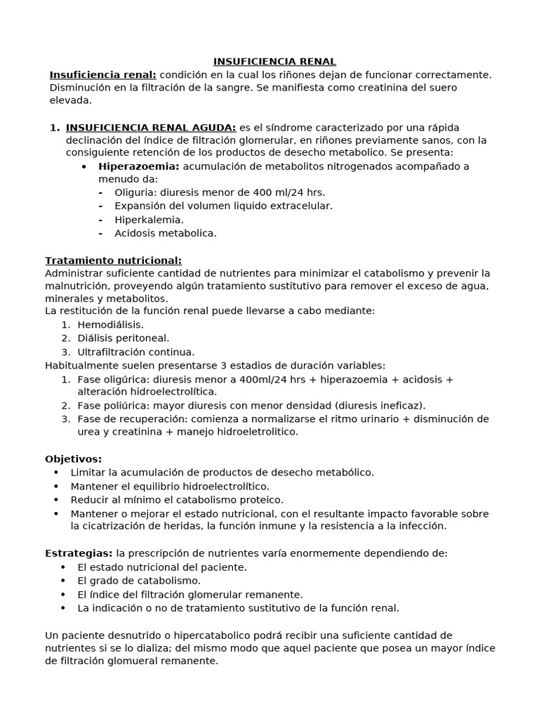 recibir una dieta controlada en liquidos, proteínas y electrolitos con el objeto de posponer