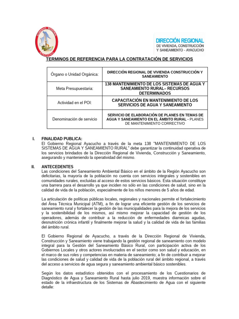 MANTENIMIENTO CORRECTIVO para lograr el cierre de brechas en la Región de Ayacucho.