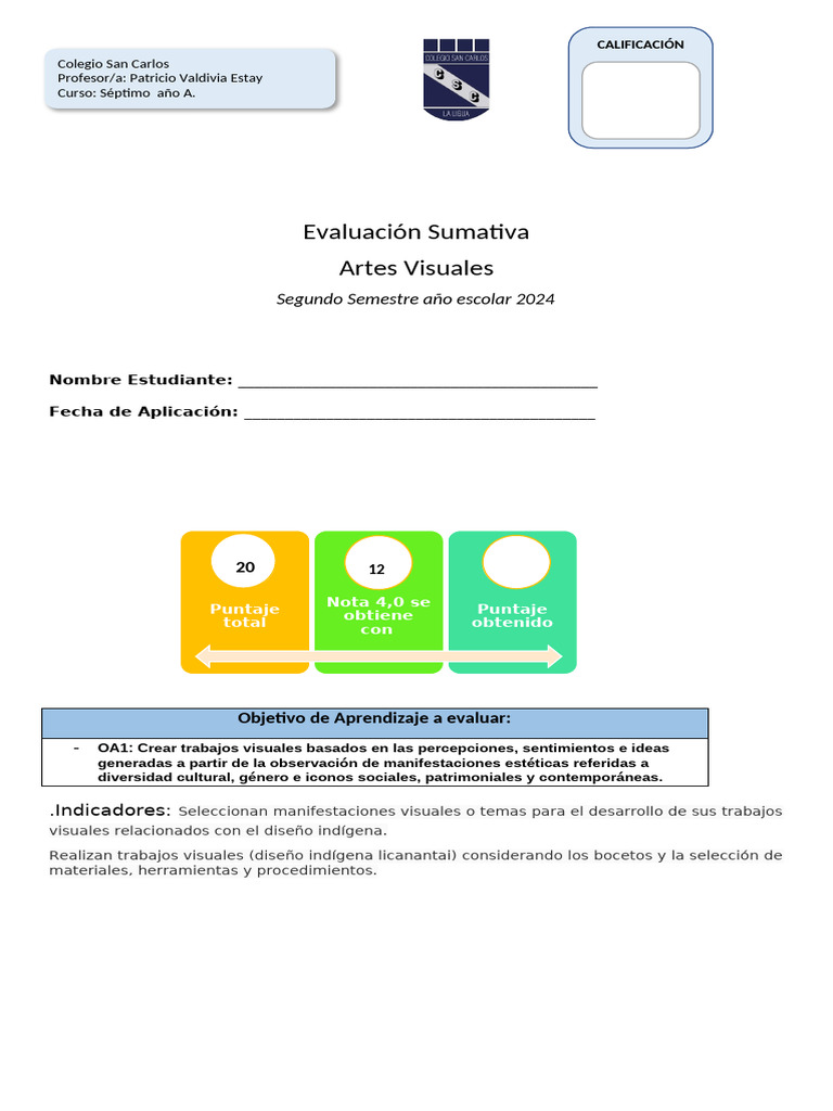 - OA1: Crear trabajos visuales basados en las percepciones, sentimientos e ideas