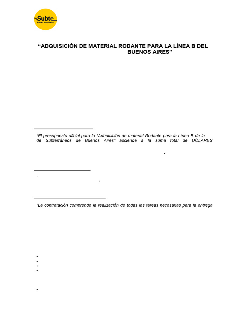 “ADQUISICIÓN DE MATERIAL RODANTE PARA LA LÍNEA B DEL
