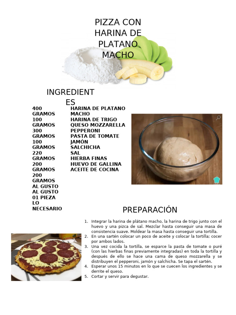 1. Integrar la harina de plátano macho, la harina de trigo junto con el