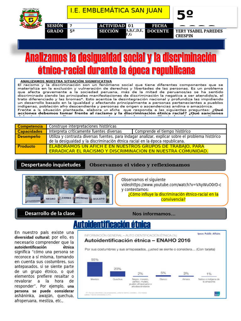 GRADO 5º SECCIÓN A,B,C,D,E, DOCENTE YERY YSABEL PAREDES