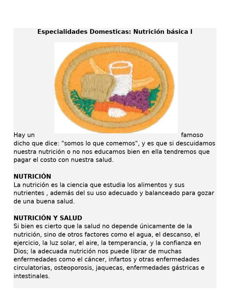 Especialidades Domesticas: Nutrición básica I