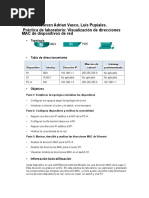 Las respuestas pueden variar. Puede haber más direcciones MAC en la tabla.