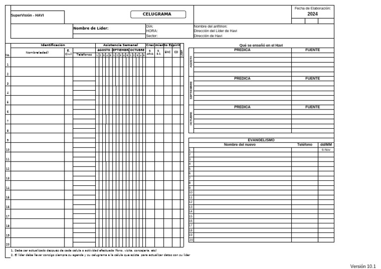 2. El líder debe llevar consigo siempre su agenda y su celugrama a la célula que asiste para actualizar datos con su líder