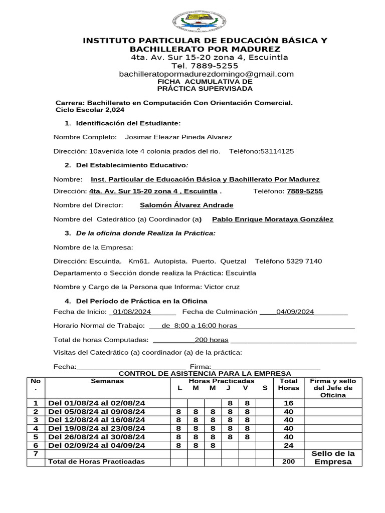 Nombre: Inst. Particular de Educación Básica y Bachillerato Por Madurez