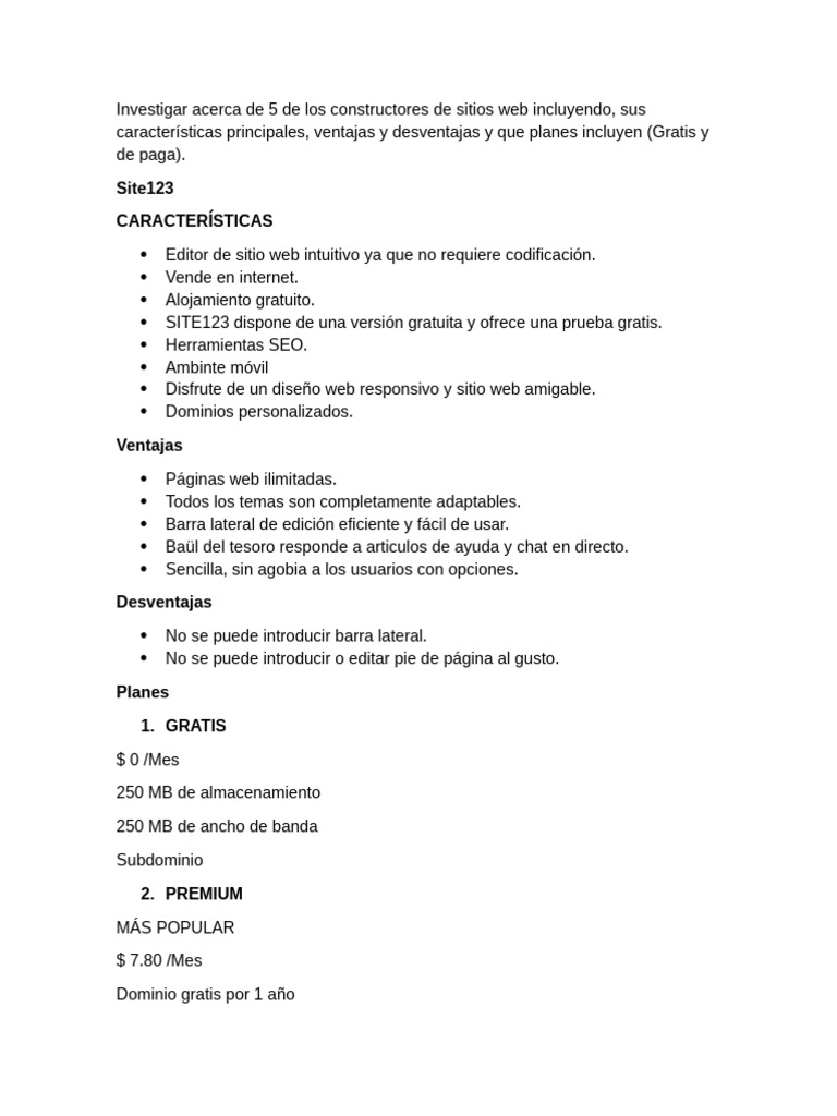 Investigar acerca de 5 de los constructores de sitios web incluyendo, sus
