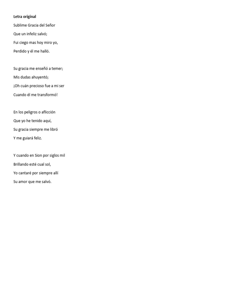 Sublime Gracia del Señor, que a un infeliz Sublime Gracia, Inmenso amor.