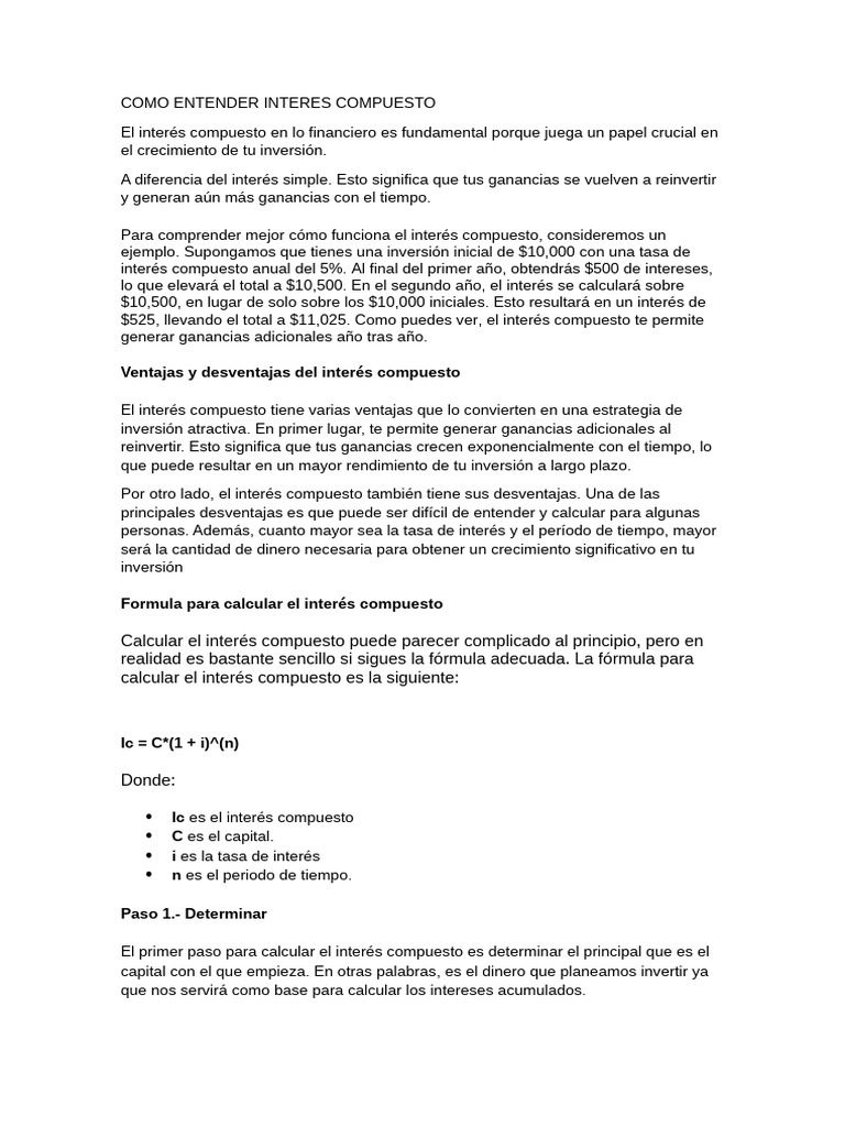 COMO ENTENDER INTERES COMPUESTO