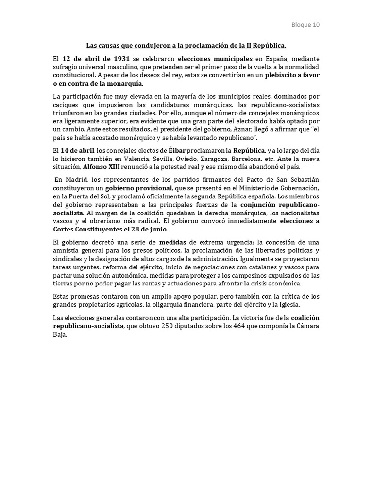 Las causas que condujeron a la proclamación de la II República.