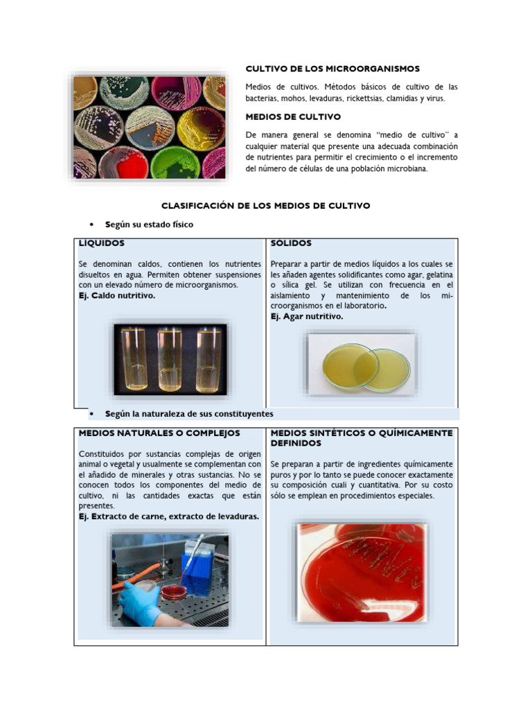 De manera general se denomina “medio de cultivo” a