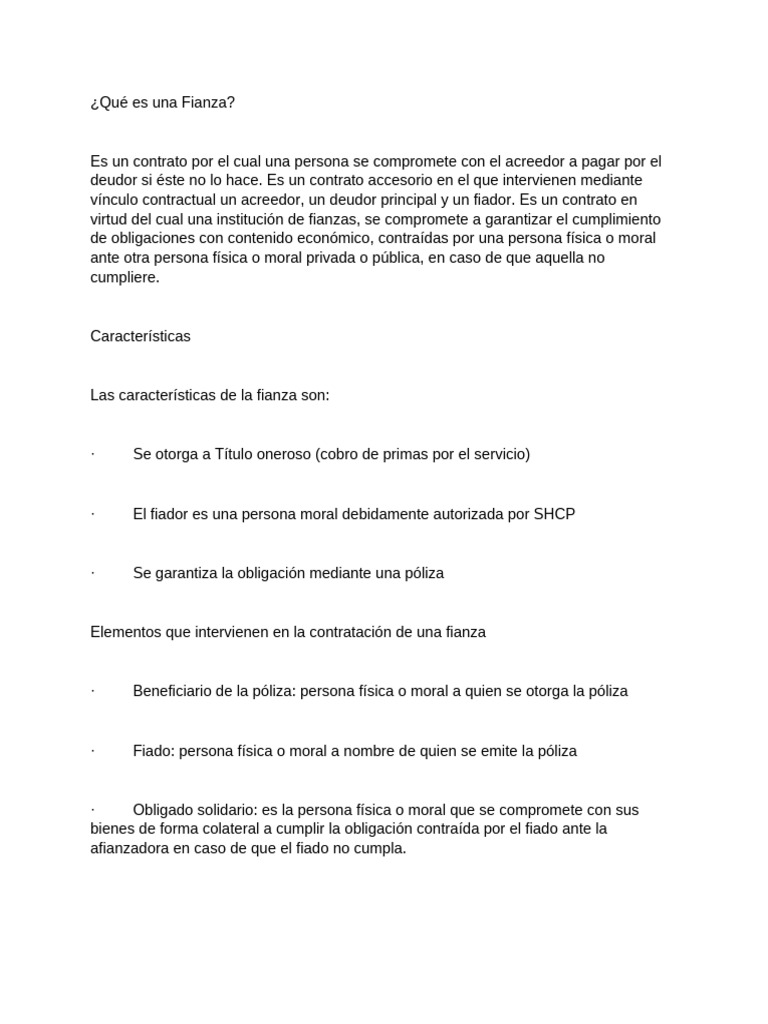 Las características de la fianza son: