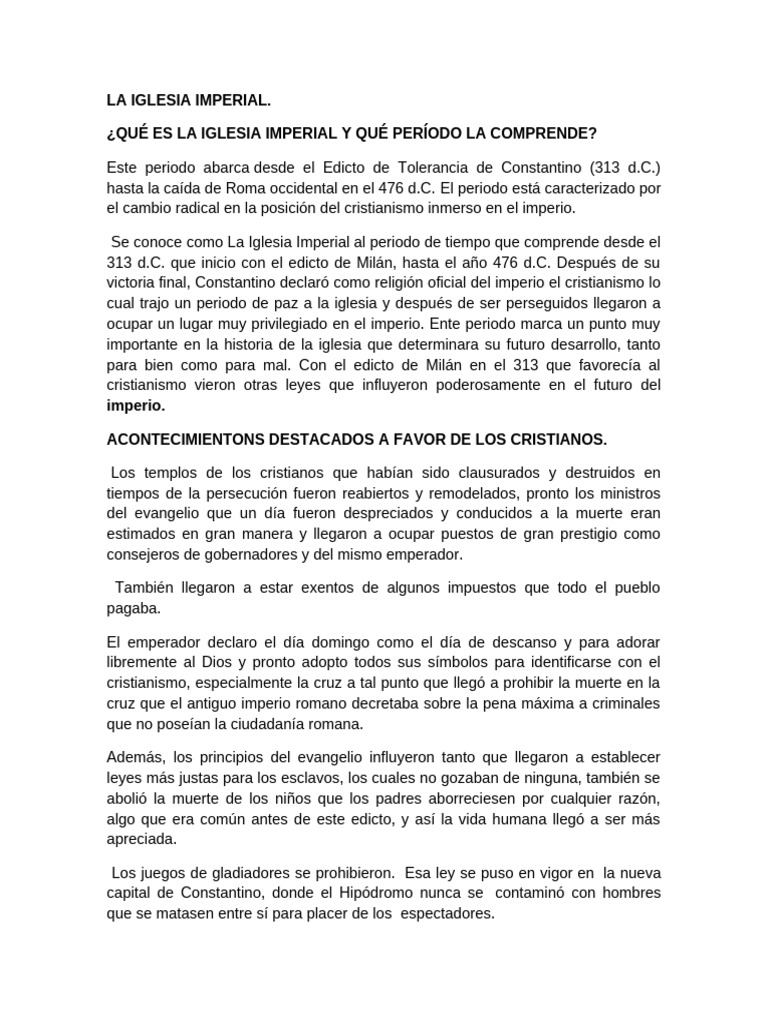 Se conoce como La Iglesia Imperial al periodo de tiempo que comprende desde el