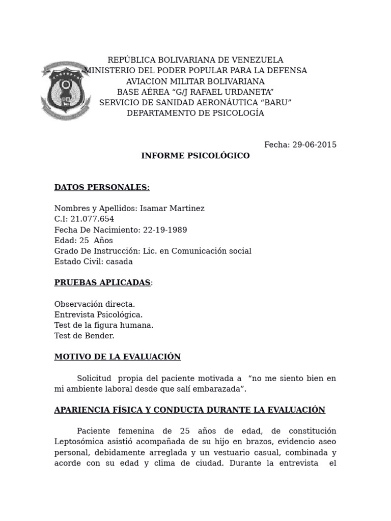 INFORME PSICOLÓGICO