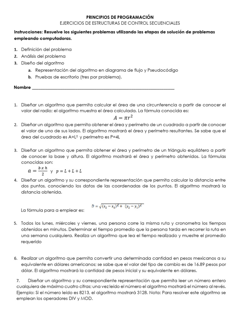 Instrucciones: Resuelve los siguientes problemas utilizando las etapas de solución de problemas
