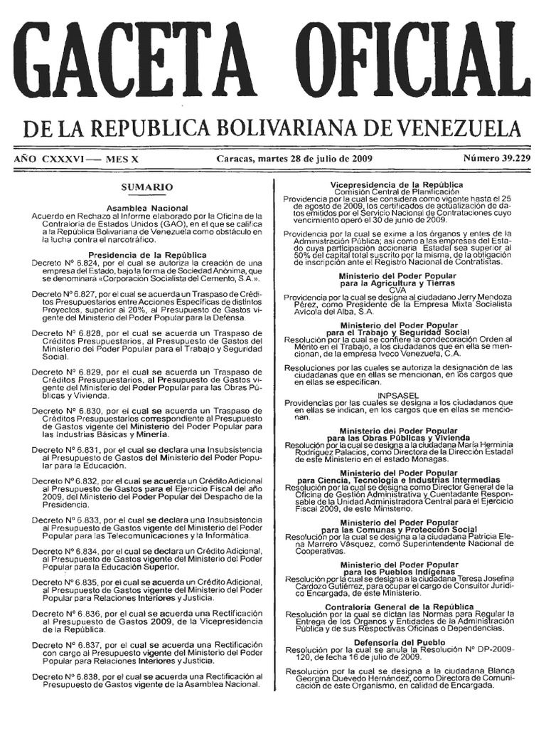 GACETA OFICIAL DE_LA REPUBLICA BOLIVARIANA DE VENEZUELA,