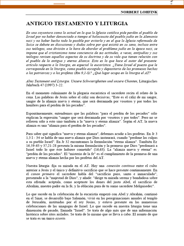 Mantengo como obligatoria una lectura del AT que temáticamente no esté en función