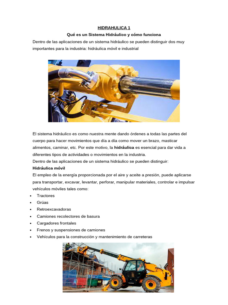 alimentos, caminar, etc. Por este motivo, la hidráulica es esencial para dar vida a