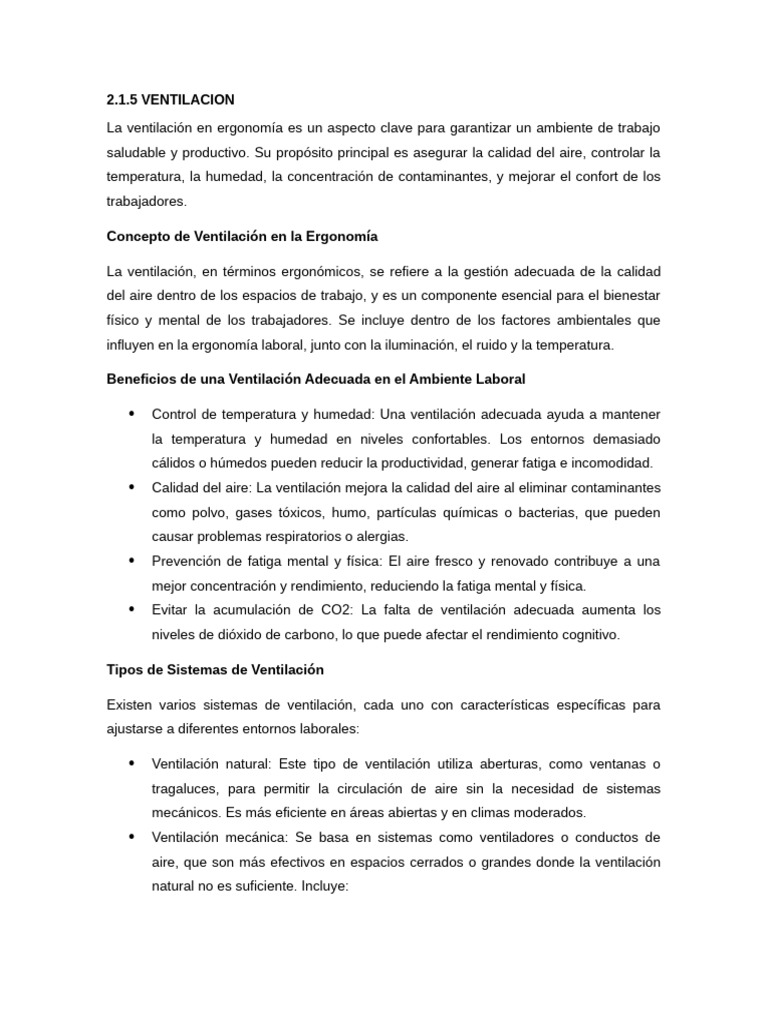 Concepto de Ventilación en la Ergonomía