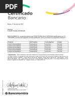 BANCOLOMBIA S.A. se permite informar que a la fecha de expedición de esta certificación, tiene con el banco los