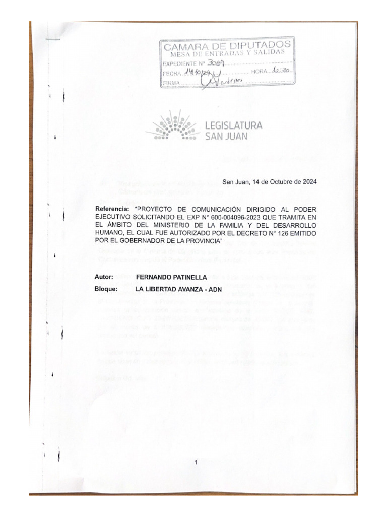 Referencia: “PROYECTO DE COMUNICACION DIRIGIDO AL PODER