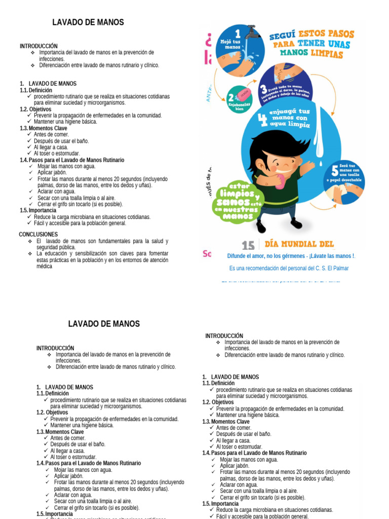 Importancia del lavado de manos en la prevención de Diferenciación entre lavado de manos rutinario y clínico.