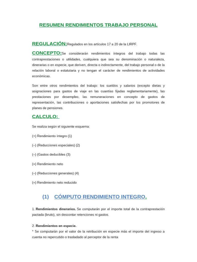 RESUMEN RENDIMIENTOS TRABAJO PERSONAL