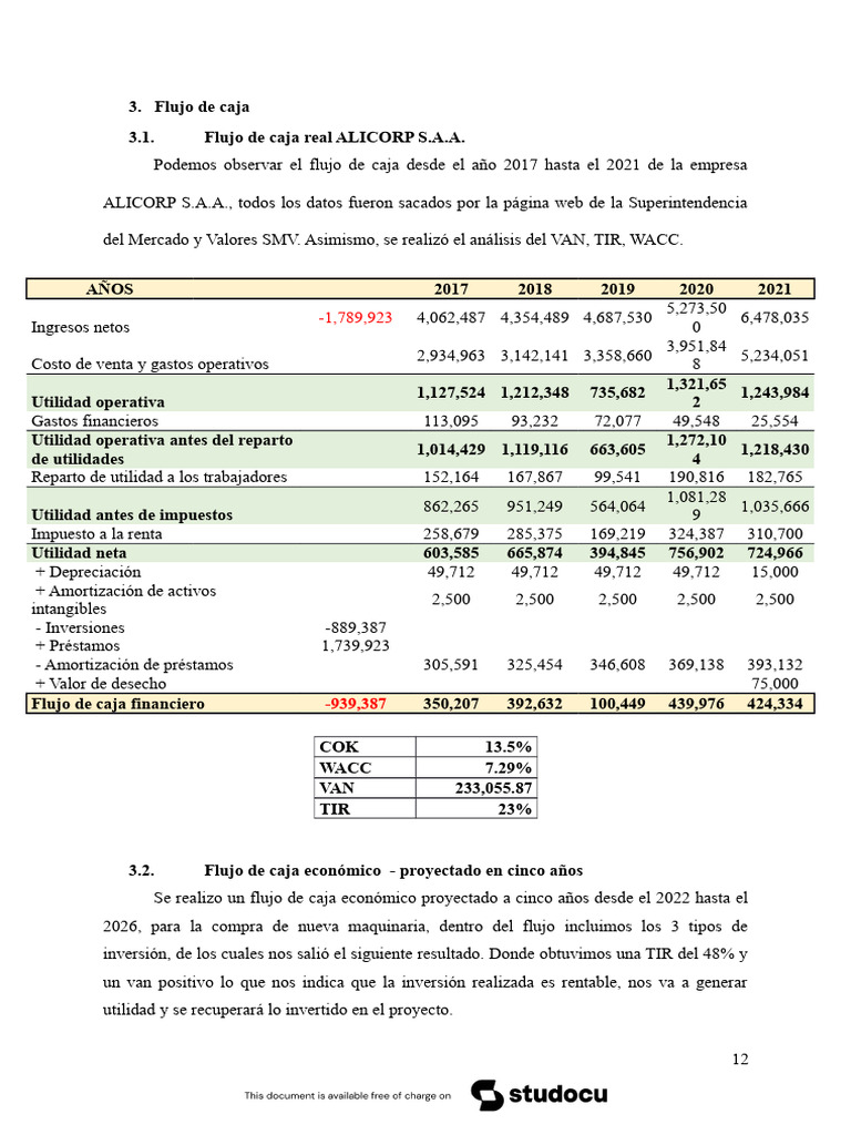 3.1. Flujo de caja real ALICORP S.A.A.