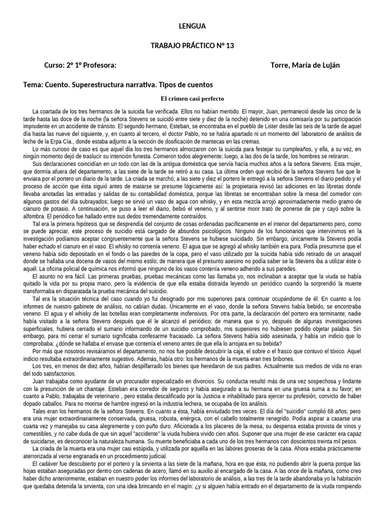 a) ¿Para qué fue escrito el texto “El crimen casi perfecto?