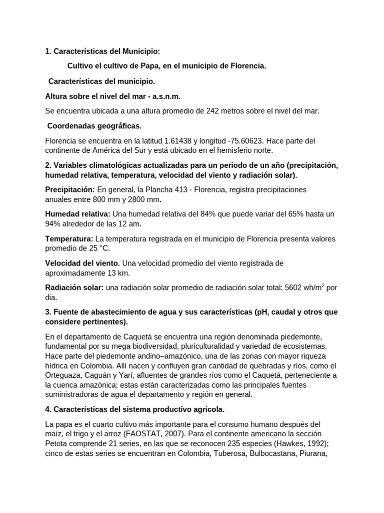 Cultivo el cultivo de Papa, en el municipio de Florencia.
