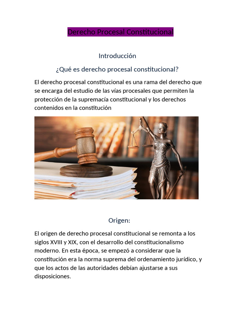 El origen de derecho procesal constitucional se remonta a los