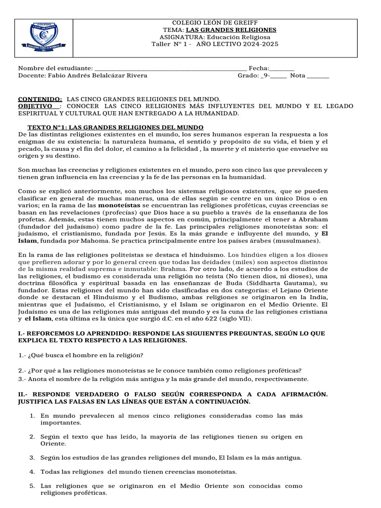 TEXTO N°1: LAS GRANDES RELIGIONES DEL MUNDO