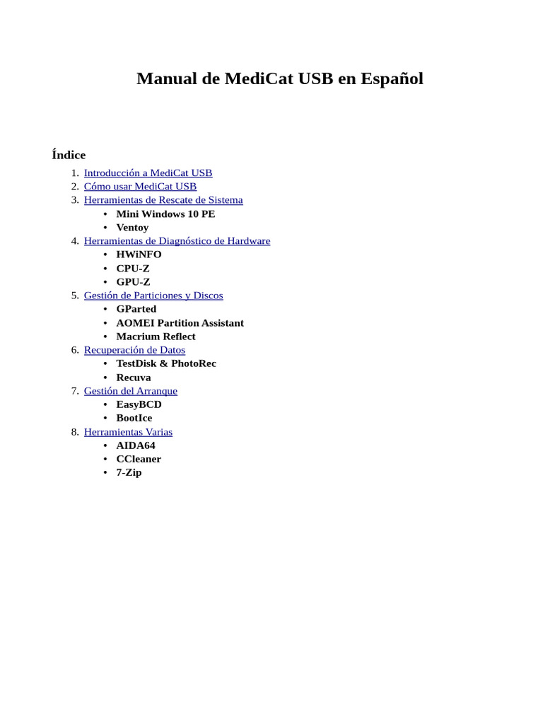 MediCat USB es una suite de herramientas diseñadas para técnicos y entusiastas de la informática.
