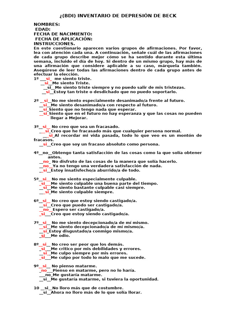 ¿(BDI) INVENTARIO DE DEPRESIÓN DE BECK