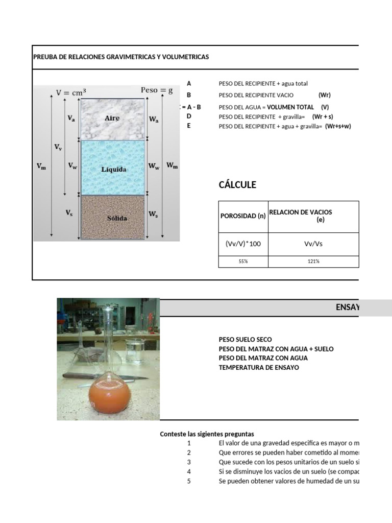 PREUBA DE RELACIONES GRAVIMETRICAS Y VOLUMETRICAS