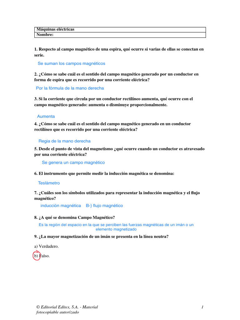1. Respecto al campo magnético de una espira, qué ocurre si varias de ellas se conectan en